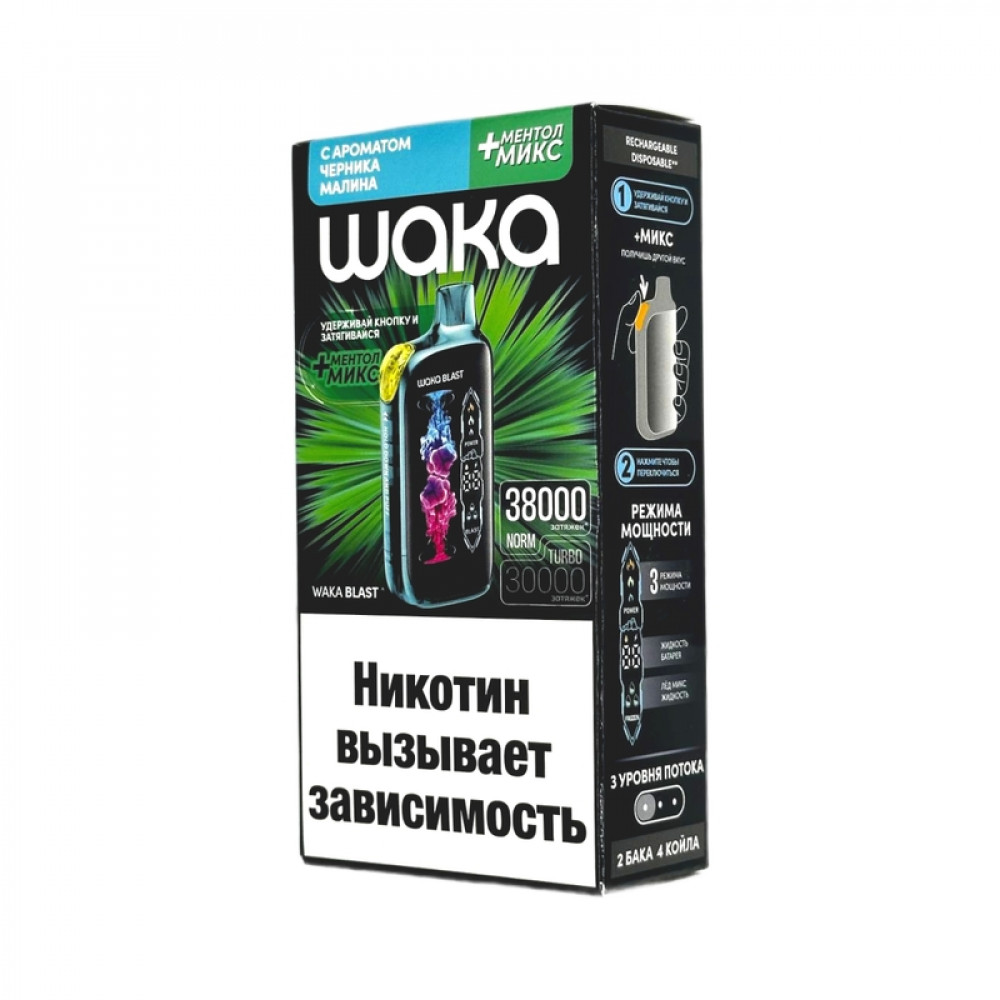 WAKA BLAST 38000 Hard - Черника малина + ментол микс - купить в Стерлитамаке